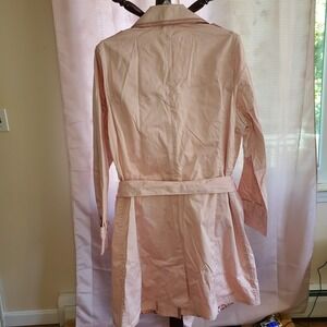 Dennis Basso light pink trench coat jacket button front belt pockets size large