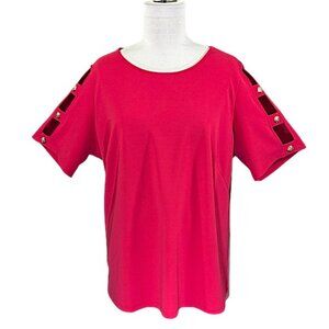 Dennis By Dennis Basso Luxe Crepe Top Size 2X Lattice Sleeve W/Button Trim