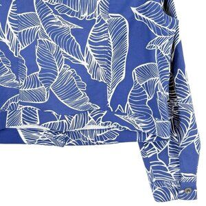 This women's jacket from Dennis By Dennis Basso combines elegance with comfort. Crafted with a blend of cotton, linen, and spandex, it offers both style and flexibility. The blue and white leaf print adds a touch of sophistication, suitable for various occasions.