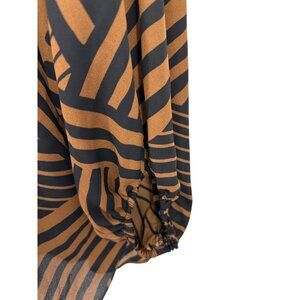 This blouse offers a chic zebra print design and versatile tie-neck detail. Its relaxed fit and lightweight fabric ensure comfort and style for work or leisure. Small loop on the back of the neck to slide the neck tie through.