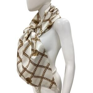 Dennis By DennisBasso Scarf Women’s 1 Size Chains And Hearts Design Cream & Gold
