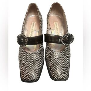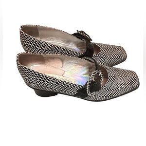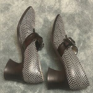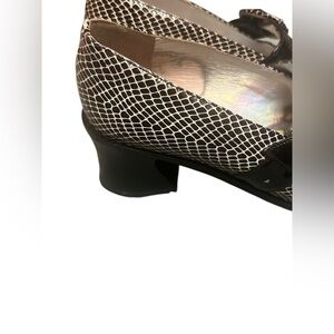 Dennis Comeau Leather Block Stylish Black/White Heels Herringbone Pattern 7.5