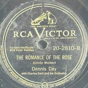 Side A offers "Clancy Lowered The Boom," penned by Johnny Lange and Hy Heath, a lively tune accompanied by a quartet and the talented Charles Dant and his orchestra. Flip it over, and Side B enchants with "The Romance Of The Rose," a Cindy Walker composition showcasing Dennis Day's graceful vocals.