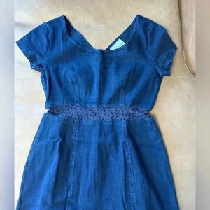 Dennis Goldsmith Vintage Denim Short Sleeve Mesh Knee Length Dress Sz 6