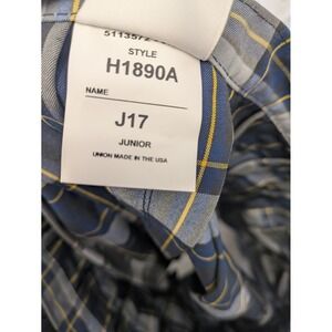 A junior size plaid pleated skirt with a classic tartan pattern. This skirt features a timeless design perfect for a variety of occasions. Its versatile style makes it ideal for school, casual outings, or even a retro-inspired look.