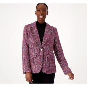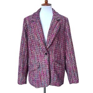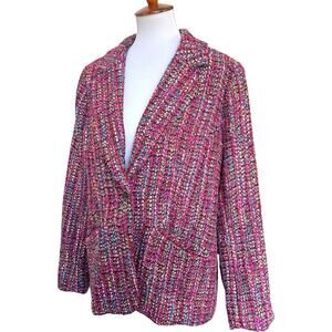 Dennis by Dennis Basso Notch Lapel Tweed Blazer Fuchsia Multi Women's Size US 16