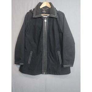Dennis by Dennis Basso Polyester Jacket Black Hooded Coat Large