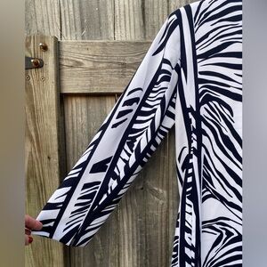 Stylish zebra tunic dress. Long sleeves. This is a well made dress. There is a small pick on one sleeve that isn’t visible when wearing. Please see photo.