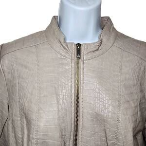 Dennis by Dennis Basso Women Jackets, Bone Grey Faux Leather Blazer, Sz XS