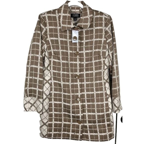 Dennis Basso Women's Plaid Button Front Topper Pockets Cream Tan Size 8 NWT