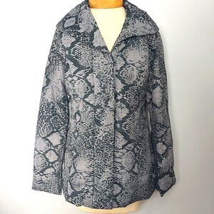 Dennis by Dennis Basso Lightweight Coat Snakeskin Print Beautifully Lined High Collar, Zipper w/ Snap Overlay Close, 2 Hidden Front Pockets, Like New