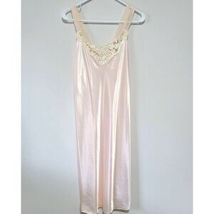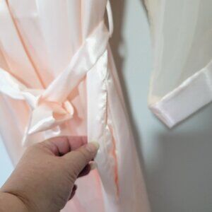 The Dentelle Nightgown & Robe Peignoir Set in size Medium is a luxurious and elegant eveningwear ensemble designed for women. Made in the United States, this original vintage set features delicate satin and lace trims, creating a soft and feminine look. The pale pink/peach color adds a touch of romance to the overall design, making it a perfect choice for special occasions or relaxing nights at home. The set includes a nightgown and robe peignoir, ideal for creating a comfortable and stylish loungewear outfit. It is new old stock and there are a few imperfections that are included in the photos.