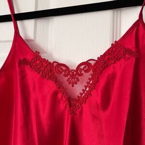 Dentelle V-Neck Lace Trim Satin Chemise - Size M