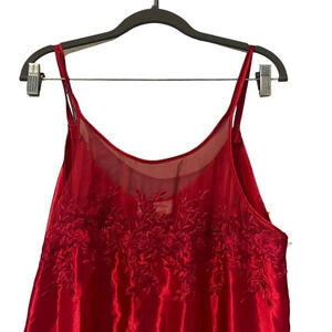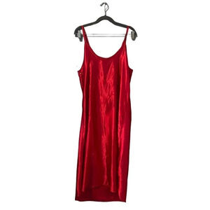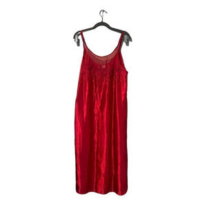 Dentelle Vintage 80s Red Slip Midi Dress / Nightgown with Lace Accents