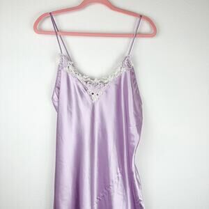Dentelle Vintage Lingerie 90s Slip Lavender Embroidered Floral V Neck