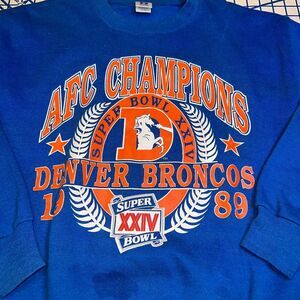 The Denver Broncos 1989 AFC Champion Super Bowl XXIV Sweatshirt Logo 7 in Size XL is a officially licensed fan apparel featuring the iconic logo from the historic victory.