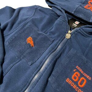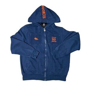 Denver Broncos Full Zip Hoodie Blue Orange Chest Pockets NFL Pro Line Men's L