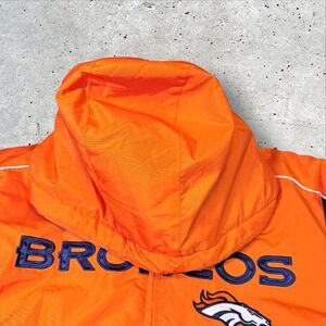 Denver Broncos NFL Hooded Puffer Jacket Sz Large Orange Vintage Embroidered Logo