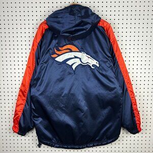 Denver Broncos Vintage Puffer Jacket Medium Reebok 90s Fleece Lined Half Zip Y2K