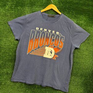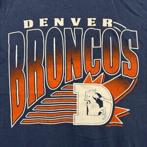 Denver Broncos blue T-Shirt Size Large with classic team logo. Measures 23” pit to pit and 25” long. Perfect for NFL fans and game days. Soft cotton fit for everyday wear