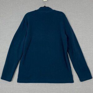 Denver Hayes Sweater. Men's Tag Size Large. Cotton / Polyester blend. Stretchy, tight knit. Blue. Modern Fit. One quarter button. Ribbed collar.