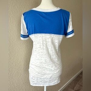 Show your Nuggets pride with this unique Blue84 women’s V-neck tee! Featuring a distressed Colorado state flag design with the Denver Nuggets logo, this sporty top combines local pride with team spirit.