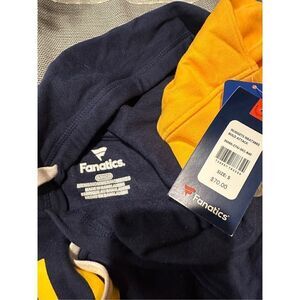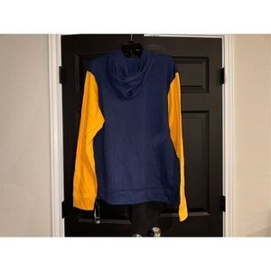 Size Small | color : Navy/Gold | 52% Cotton 42% Polyester | very soft.