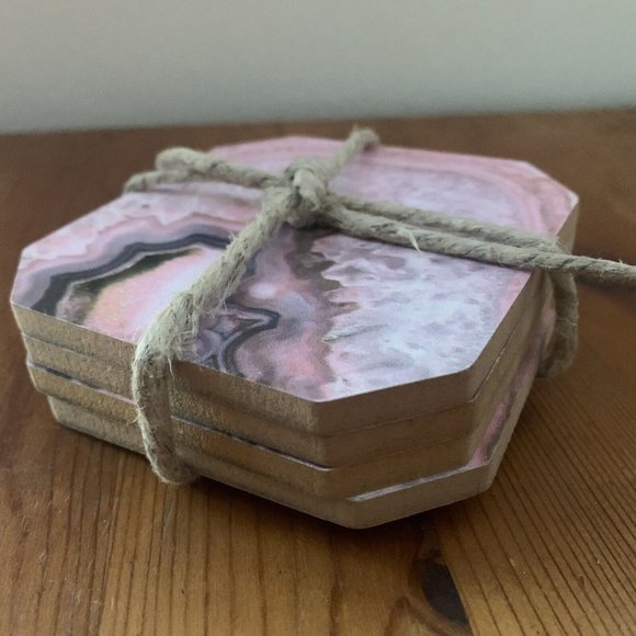 Deny Designs set of 4 square coasters pink marbed quartz mineral design