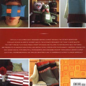 In Denyse Schmidt Quilts, Schmidt reveals the secrets behind her most popular designs. Thirty projects range from the simple to the challenging, from patchwork slippers, aprons to tote bags & pillows to her quilt patterns, offering something for every level of quilter. Schmidt reviews the fundamentals of quilting and provides easy-to-follow instructions, patterns, & sewing tips.