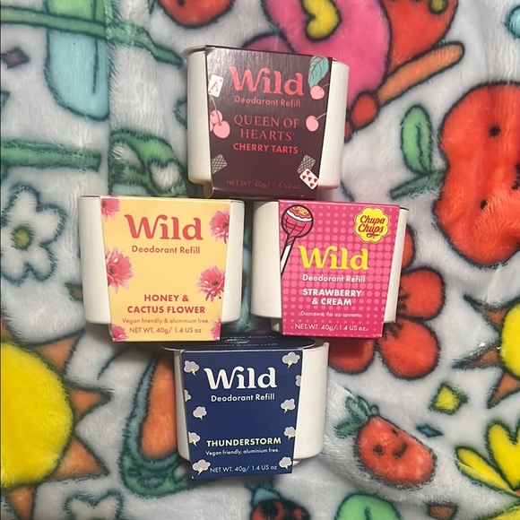 Experience freshness with the Deodorant Refill Set. Includes vibrant scents like Queen of Hearts, Honey & Cactus Flower, Strawberry & Cream, and Thunderstorm. Perfect for a colorful and fragrant day.