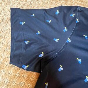 Deolax Navy All Over Drinks Print Polo Shirt Men's M Golf Flex Grapic Polo