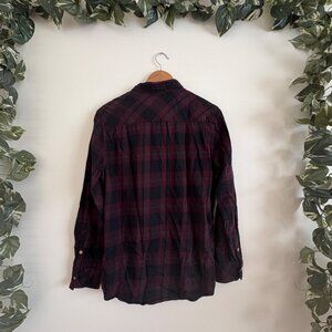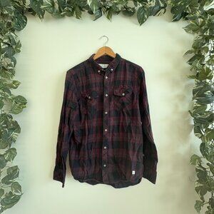 Depart West Buckle Long Sleeve Front Button Shirt Plaid Maroon Men’s Size M