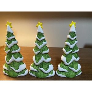 Set of 3 Department 56 Ceramic 8” Christmas tree snow Star Village Accessories,