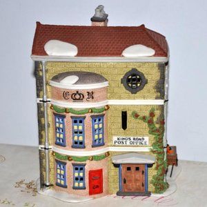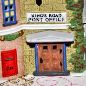 Department 56 Dickens Village King's Road Post Office. Lighted Christmas House with cord that has an on/off switch. Handpainted porcelain RETIRED IN 1998.