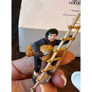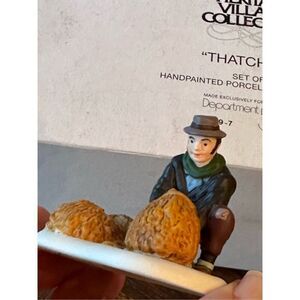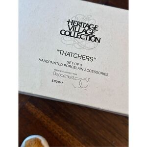 Set of 3 collectible accessory pieces for Dickens Village. This is the “Thatcher’s” and includes a man on a ladder, wagon of thatch, and kneeling man. Created from porcelain. Hand painted with intricate detail. EUC. I enjoyed using it with Cobb Cottage sold separately. Great way to personalize your Christmas village.