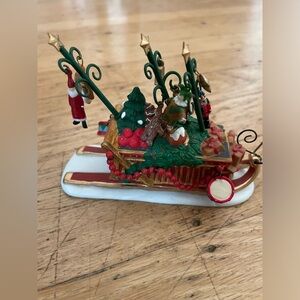 This is a four piece set including Father Christmas, the sleigh full of toys and two bottle brush trees. The pieces are in good used condition. Please see all photos for most accurate description.