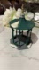 Charming gazebo accent with green and gold details. Ideal for adding a classic touch to your space.
