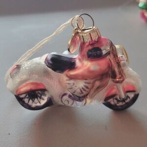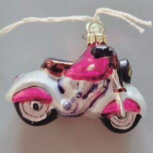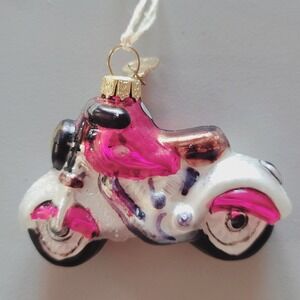 Keywords: Motorcycle Ornament, Christmas Ornament, Holiday Decoration, Glass Ornament, Pink Ornament, Silver Ornament, Biker Gift, Motorcycle Christmas, Holiday Decor, Tree Ornament, Decorative Ornament, Collectible Ornament