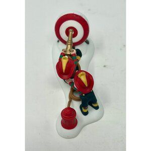In a whimsical scene straight from the North Pole, two industrious elves don fire helmets as they practice their firefighting skills. With a hydrant at their side and a target in sight, they embody teamwork and precision, ensuring the North Pole is always prepared. A delightful addition to any Christmas village display.