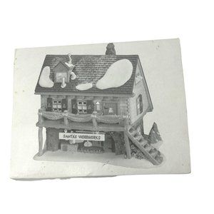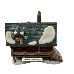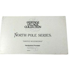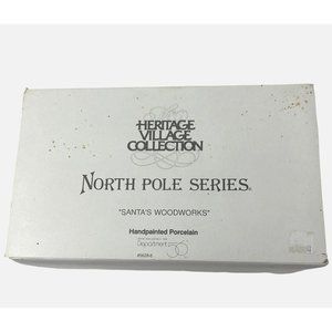 This Vintage, Retired Department 56 North Pole Village Piece - Santa's Woodworks is in excellent preowned condition.