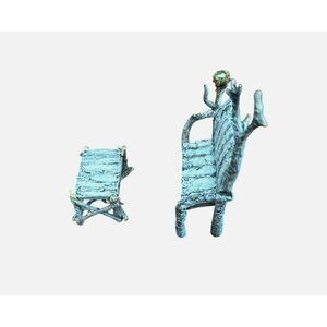 Crafted with intricate detail, this whimsical miniature bench and table set evokes the charm of a snowy village scene. Designed to complement Department 56 villages, these hand-painted pieces add a touch of rustic elegance to any holiday display. Beautifully sculpted, they bring a magical story to life.