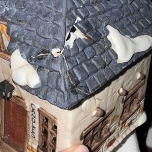 ****This house has some repair damage as well as a missing piece. Please see the photos and read the captions with them so you know exactly what youre getting. In addition, there is no bulb included in the set so I do not know if the cord is working I am including the cord, but there is no guarantee that the cord will work. Outer box also has some moisture damage and tape across it. Thank you for reading before you ask questions.