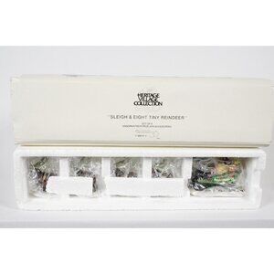 Department 56 Sleigh & Eight Tiny Reindeer Heritage Village 56111 Original Box