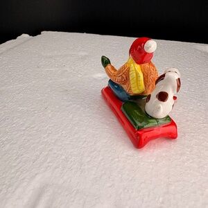 The Department 56 Snow Village Christmas Children Playing In The Snow set includes 6 ceramic and porcelain pieces depicting a festive scene of children having fun in the snow during the Christmas season. This small, multicolored collection belongs to the Snow Village series, known for its seasonal theme and glossy finish. Perfect for collectors of Christmas villages, this original set from the late 20th century captures the essence of holiday cheer and nostalgia.