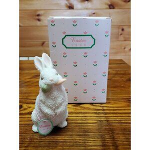 Department 56 Snowbabies Easter Bunny Rabbit Pink Ears Nose Vintage 1996. Has a small chip on top of head see pictures.