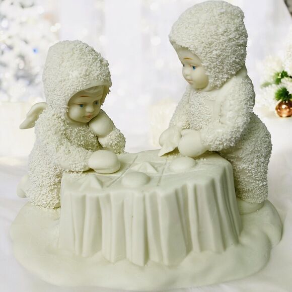 * Department 56 Dept 56 Snowbabies Snow Babies "Stars In-A-Row Tic-Tac-Toe" Playing a board game Figurine Figure Sculpture Statue Home Decor Decoration. Retired item #68225.