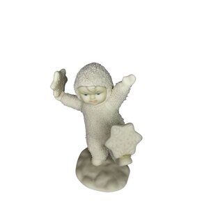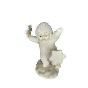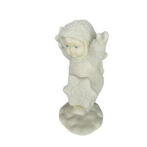 This delightful Department 56 Snowbaby figurine, "Snowflakes Are Special," from 2001, exudes charm and nostalgia. Crafted meticulously, it features a Snowbaby clad in a textured snowsuit, dancing with snowflakes. Ideal for collectors and winter enthusiasts alike, this piece captures the essence of winter's whimsical beauty.