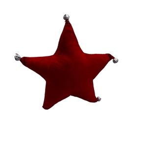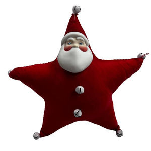 Department 56 plush stuffed Santa Claus Christmas ornament with ceramic/ porcelain face and 5 white bells at star points. Face is still held on well but has pulled away from the glue as pictured.