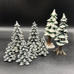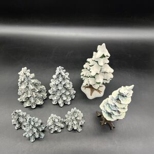 Department 56 Village Evergreen Trees Set Of 8 Flocked Christmas Porcelain Boxed
