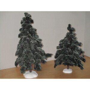 Department 56 Village Set of 2 Green Spruce Trees Rare Set #56.52637 1-12" 1-10"